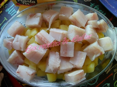Couper le poisson en gros bouts et disposez-les sur les pommes de terre.
