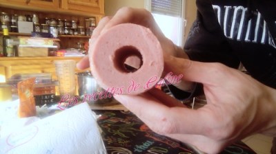 Garder le centre du cervelas, cela vous servira de bouchon.