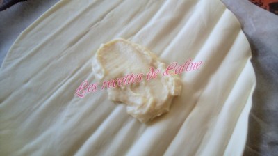 Dérouler la pâte feuilletée, et verser un peu de béchamel au centre