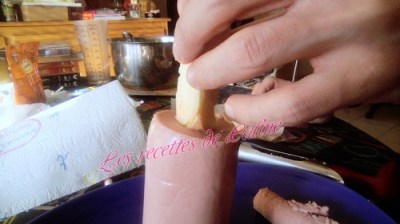 Garder le centre du cervelas, cela vous servira de bouchon.