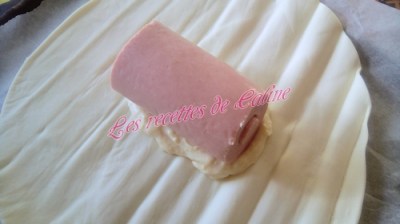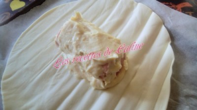 Dérouler la pâte feuilletée, et verser un peu de béchamel au centre