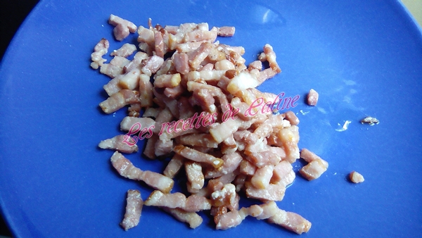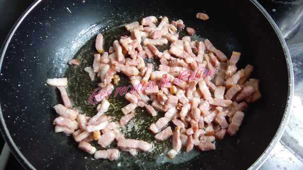 Faire revenir les lardons dans une poêle antiadhésive sans matière grasse, une fois bien doré, égouttez-les sur du papier absorbant.