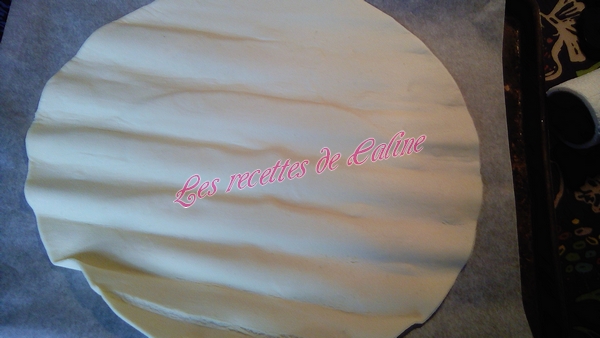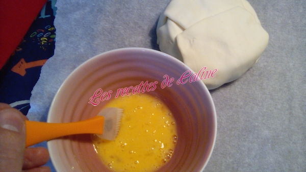 Mettre une feuille de papier sulfurisé sur une plaque de cuisson et y dérouler la pâte feuilletée (pas besoin de la piquer).