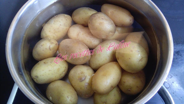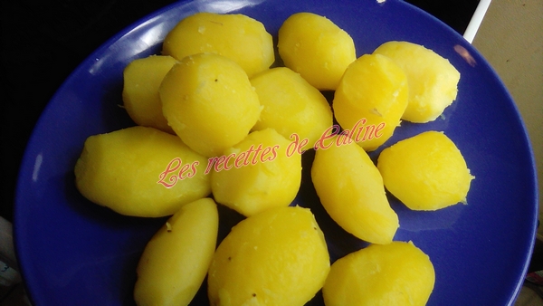 Peler et couper les pommes de terre en rondelles (ou en cube, des rondelles fines sont mieux si vous faites tout cuire en même temps dans la suite de la recette) comme dit dans astuce, vous pouvez faire cuire les pommes de terre avant, chose que j’ai faite ).