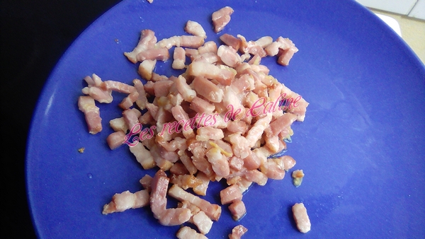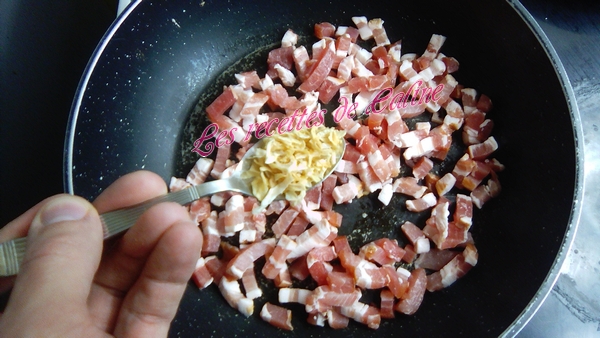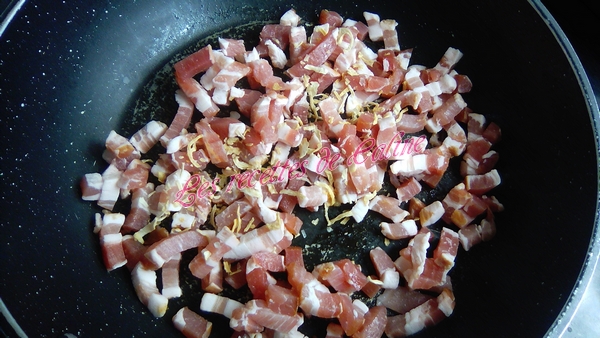 Faire revenir les lardons à la poêle, sans ajouter de matière grasse avec l’oignon. Réserver.