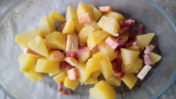 Finir de disposer le reste de pommes de terre, et lardons