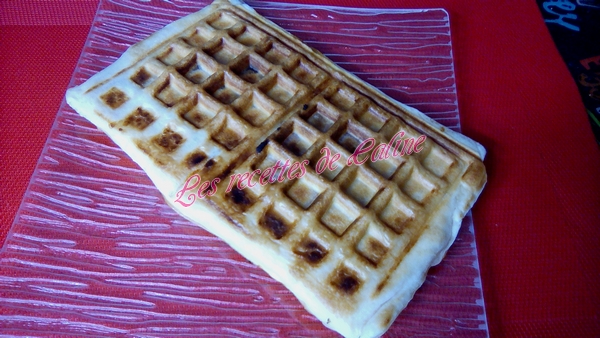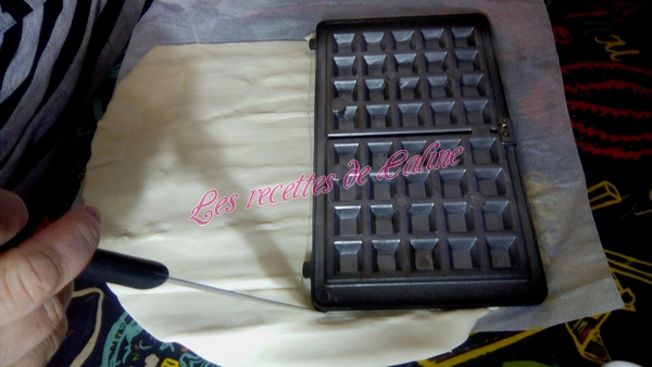 Faites deux morceaux de pâtes un peu plus grande que vos plaque de gaufrier car a la cuisson la pâte se rétracte un peu.