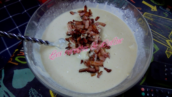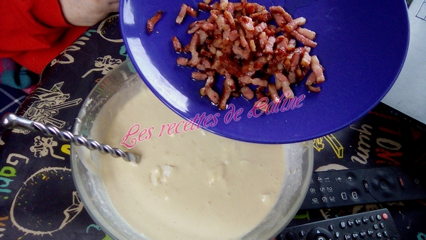 Ajouter le fromage coupé en petits morceaux ainsi que les lardons revenu dans une poêle sans matière grasse