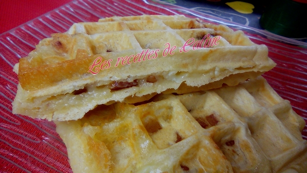 Chauffer le gaufrier, le badigeonner d’huile d’olive et verser une louche de pâte dans les alvéoles (ATTENTION, ne pas mettre trop de pâte sinon ça risque de se sauver de tout les côtés).