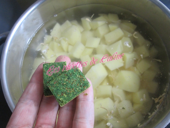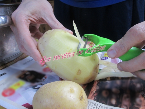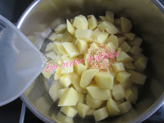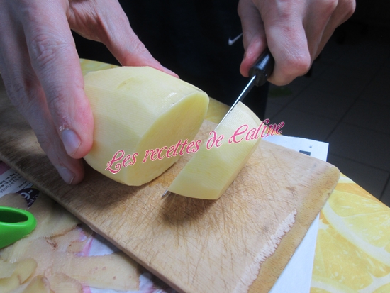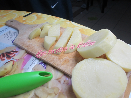Eplucher les pommes de terre puis les couper en petits morceaux.