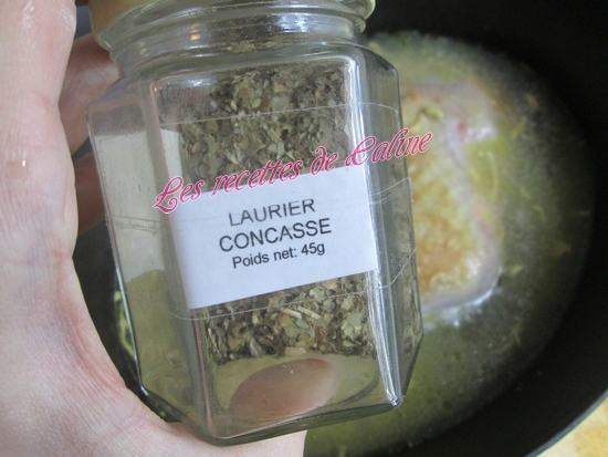 Pour le laurier, chez moi, il est concassé, mais dans la recette il vous suffit de mettre 1 a 2 feuilles