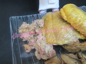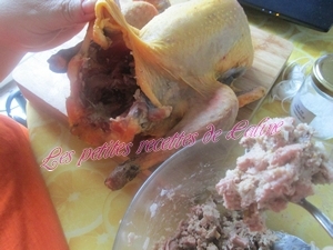 – Si vous aimez les abats et que votre pintade les contient, vous pouvez les utiliser dans votre farce, il vous faudra alors les hachez et les incorporer à la farce, vous pouvez aussi 60 g de pistaches hachés.