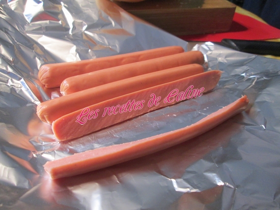 Etaler 2 toastinettes et poser 2 à 3 saucisses (de façon a ce que les saucisses tiennent mieux à la cuisson, je les ai coupé en deux dans le sens de la longueur).