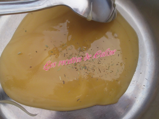 Dans une petite casserole, amener le miel à ébullition avec le thym, laisser bouillir 1 min.