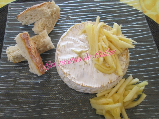 Dans un plat de service muni d’un rebord et pouvant aller au four, déposer le camembert et piquer le dessus trois fois avec un couteau. Faire cuire 15 min.