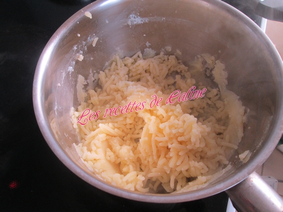Faire cuire les pommes de terre dans de l’eau un peu salée. Les égoutter puis les réduire en purée. Laisser refroidir.