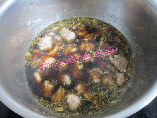 Mon homme ne mange pas de chicons, du coup, pour lui j’ai fait revenir la viande, j’y ai ajouté 15 cl de bière, un peu d’eau, 1 cuil à café de sauce soja, laurier, sel, poivre,oignons, cassonade et 1 cuil à café de 5 épices et j’ai laissé mijoter