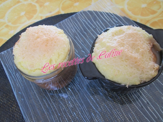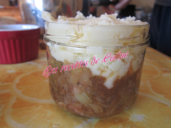 Dans des cocottes ou ramequins, remplir de préparation chicons/viande et mettre de la purée par dessus, ajouter un peu de gruyère râpé (la 1ere photo est la cocotte de mon homme).