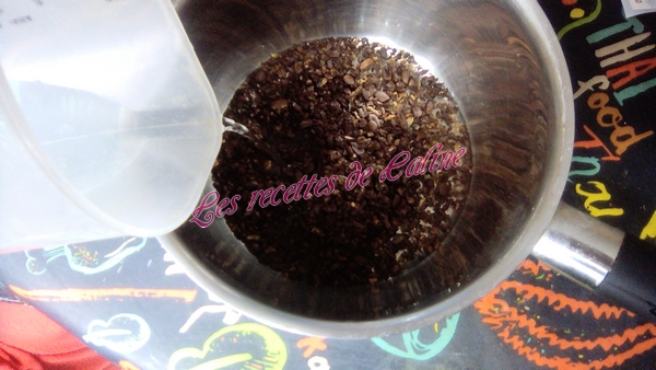 Moudre le café et le faire infuser dans 10 cl d’eau bouillante pendant 20 min. Une fois bien infuser le filtrer et le laisser refroidir. (j’avais préparer mon café la veille)