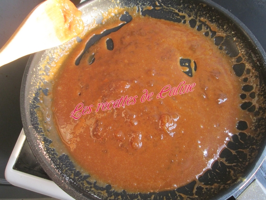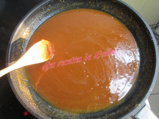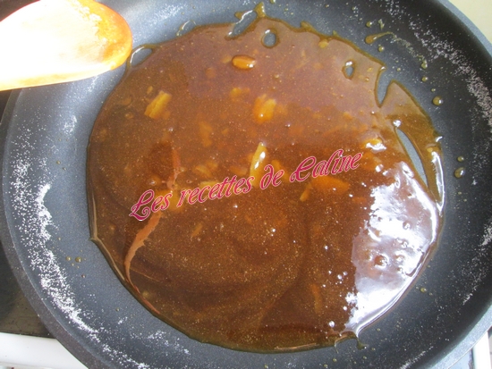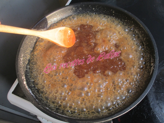 Lorsque le caramel est d’une couleur brune assez soutenue, décuisez-le avec la crème (attention, ça peut éclabousser un peu, dans ce cas, verser la crème sur les parois de la poêle) puis poursuivez la cuisson pour faire dissoudre le caramel dans la crème, et obtenir un caramel assez dense.