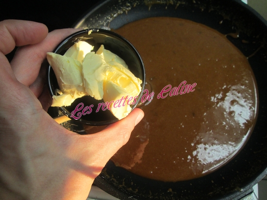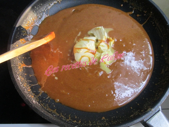 Coupez le feu, laissez refroidir le caramel quelques minutes, puis incorporez le beurre en petits cubes.