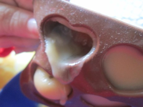Sur une plaque bien plate, placez un papier siliconé ou un silpat, et un cadre ou un cercle (voir même moule a bonbons), huilé au pinceau, ou comme je l’ai fait dans des petits moules à chocolats.