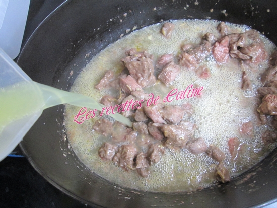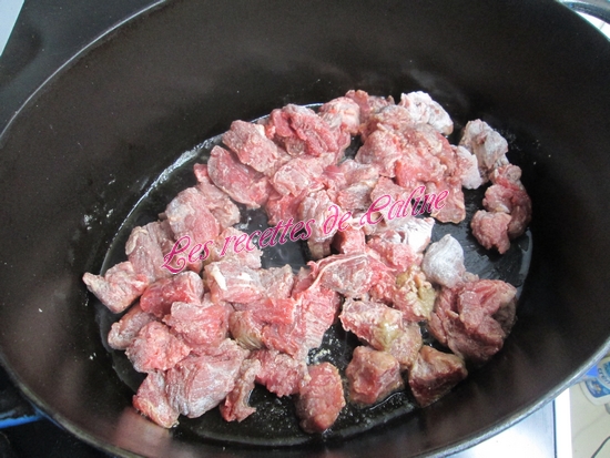 Couper vos morceaux de boeuf en petits morceaux et farinez-les.