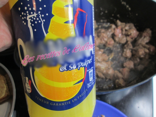 Ajouter l’Orangina, puis les tranches de pain d’épice tartinées de moutarde