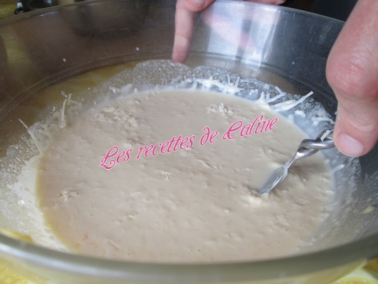 Ajouter le gruyère râpé, saler, poivrez et bien mélangez.