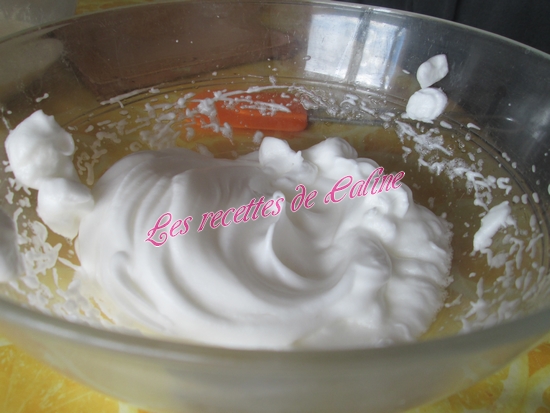 Monter les blancs en neige, puis à l’aide d’une spatule, incorporez-les à la préparation précédente en deux fois.