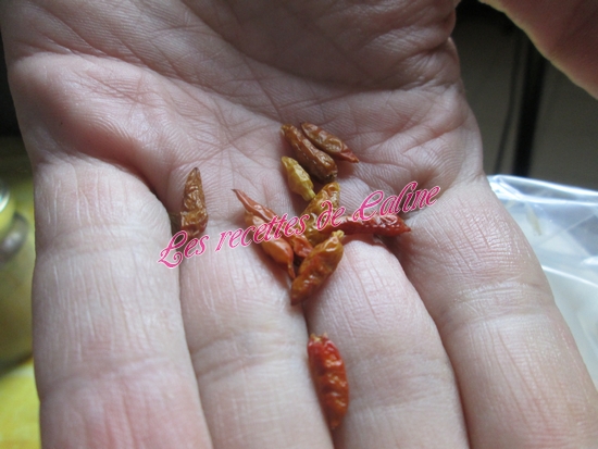 10 petits pili pili séché ou (1 cuil à café de piment en poudre)