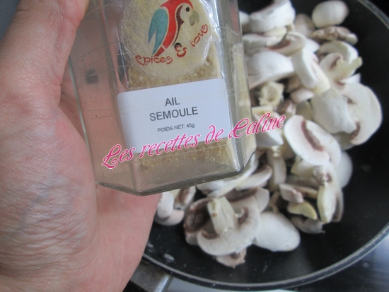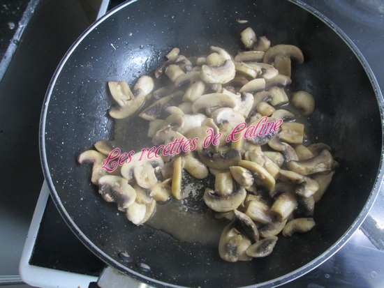 Faire revenir les champignons dans une poêle avec un peu de beurre et d’ail (il faut que toute l’eau des champignons est disparu).