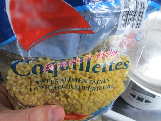 Faire cuire les coquillettes dans une casserole d’eau bouillante salée pendant 4 min, elles doivent rester ferme. Les rincer et les égoutter soigneusement. Réserver.