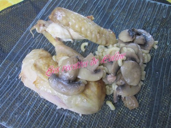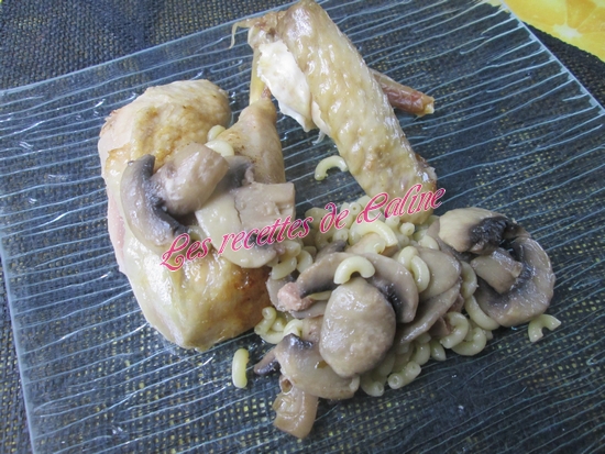 10 minutes avant la fin de cuisson du poulet, faire chauffer 20 cl d’eau avec la coupelle de bouillon. Déposer le reste de coquillettes dans le plat de cuisson, recouvrir avec le bouillon et poursuivre la cuisson pendant 10 min pour réchauffer les coquillettes.