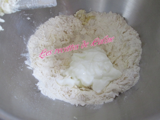 Ajoutez ensuite le yaourt et mélangez. Une fois une pâte homogène obtenue, laissez reposer environ 2 h dans une pièce chaude, en recouvrant le saladier d’un torchon propre. La pâte a du doubler de volume.