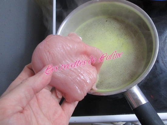 Faites-y pocher les blancs de dinde pendant 10 minutes, réserver et laissez-les refroidir.