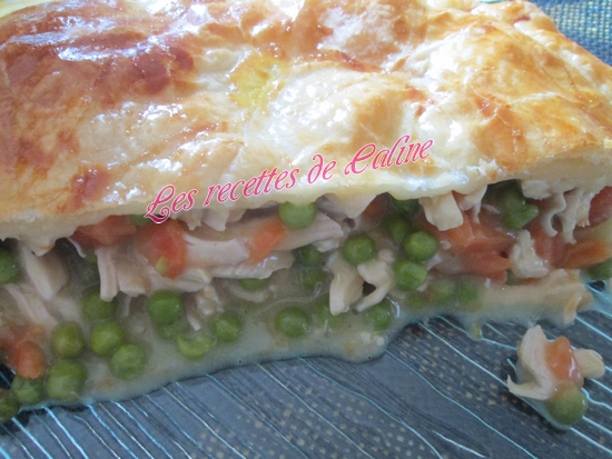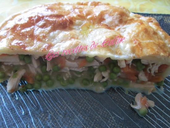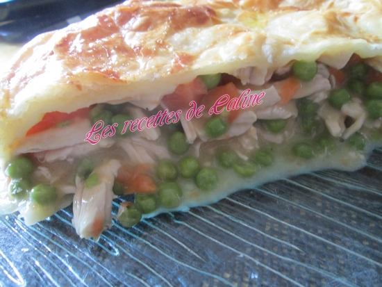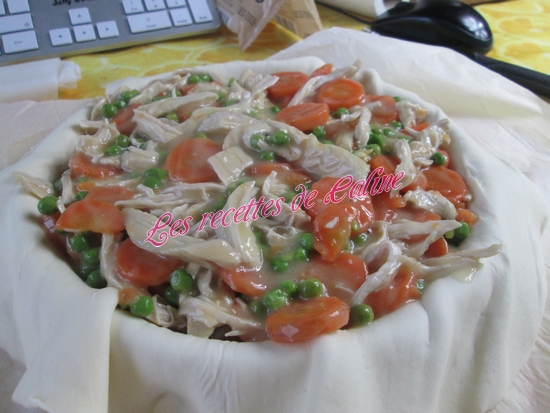Recouvrez avec la préparation à la dinde, comme vous pouvez le constater, je n’ai pas coupé les bords de la pâte, au contraire, je les ai rabattu sur la préparation