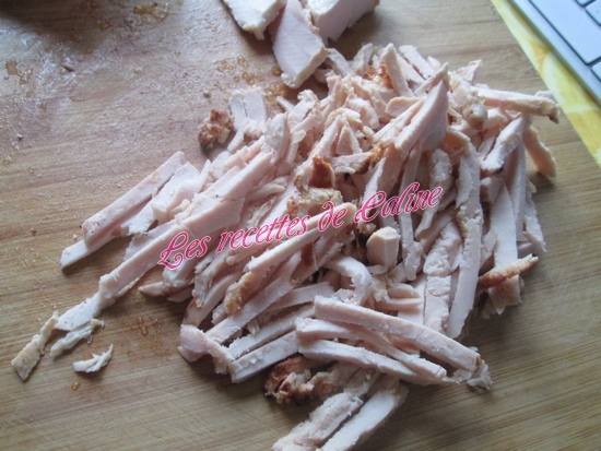 400 g de blanc de poulet cuit ou de restes de poulet rôti