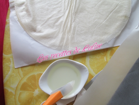 Recouvrir le tout de 2 nouvelles feuilles de pâte huilée sur le dessus, ne coupez-pas le surplus de feuilles de bricks surtout.