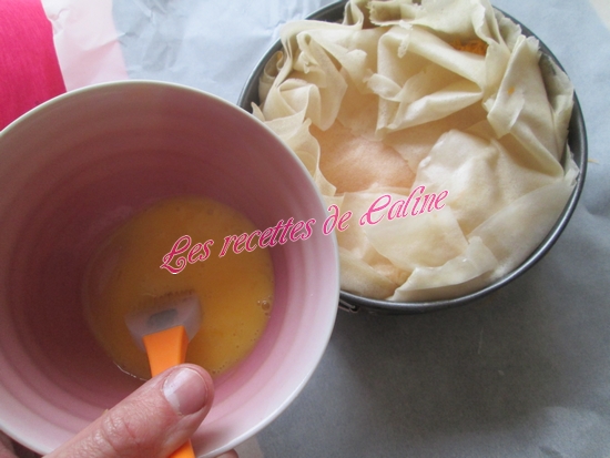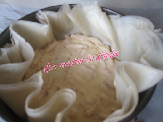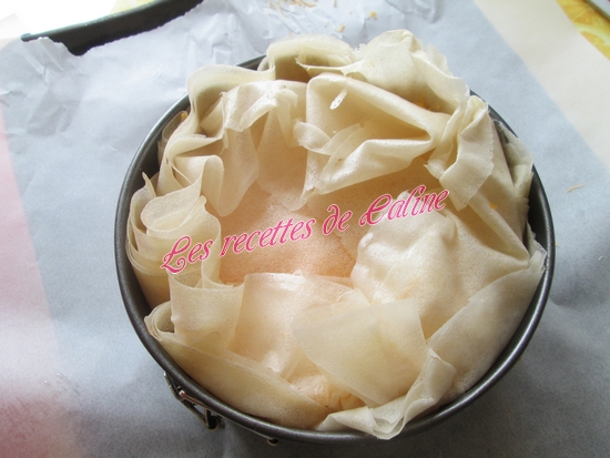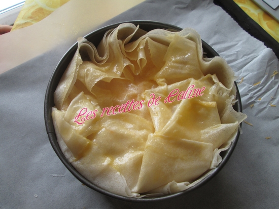 Vous pouvez réaliser cette recette avec des feuilles filo aussi, mais la il faudra augmenter les feuilles a chaque fois c’est a dire 4 ou 5 au fond, 3 au milieu et 3 au dessus