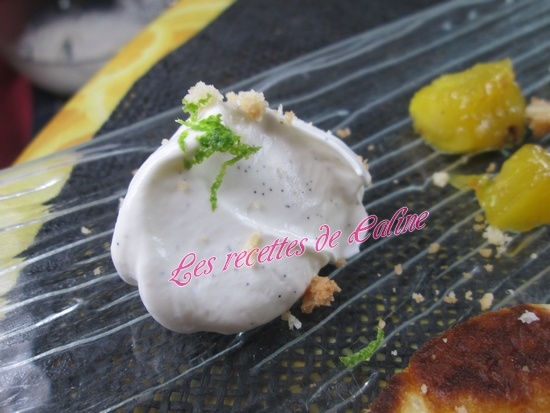 Ajouter trois pointes de crème mascarpone, le biscuit en poudre, et l’ananas en brunoise. Terminer par quelques zestes de citron vert.