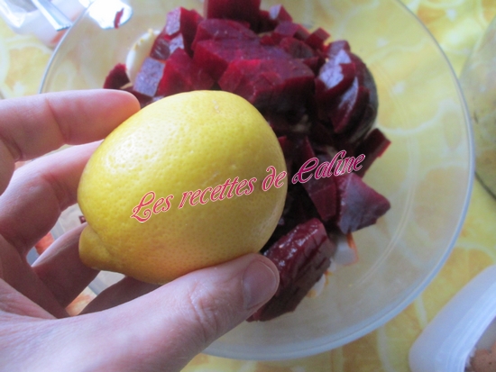 Coupez les betteraves en petits dés et les mettre aussi dans le saladier.