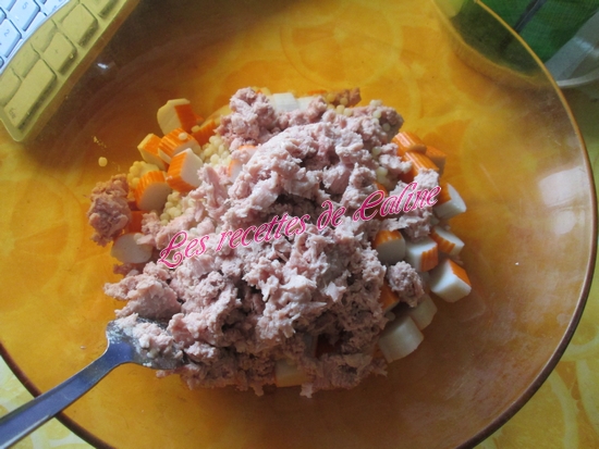 Égoutter le thon et le mettre dans le saladier