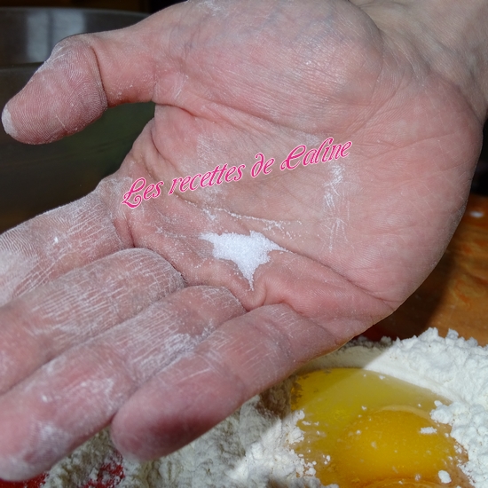 Mélanger tout en incorporant progressivement la farine (J’ai du remettre un peu d’oeuf , j’avais battu un oeuf en omelette dans un bol, et j’ai remis 2 cuil à café d’oeuf dans la pâte car elle était friable)