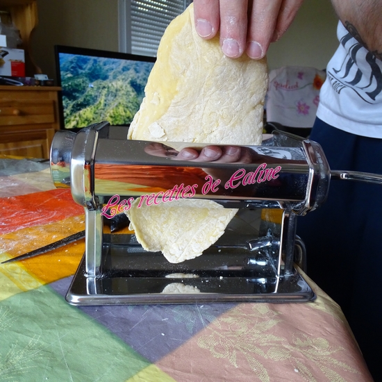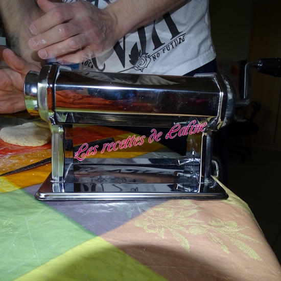 Farinez et passez au pâton suivant, une fois vos 5 pâtons fait, passé au N°3 et recommencé les mêmes manipulations que les fois d’avant. Soit vous vous arrêtez-la si vous voulez des pâtes moyennement fines ou alors les faire encore plus fines.