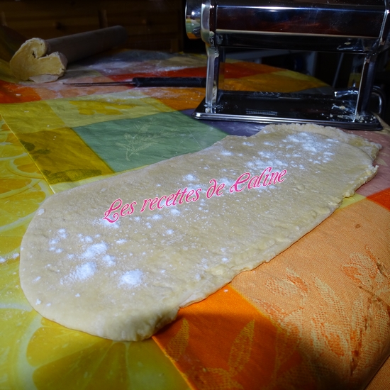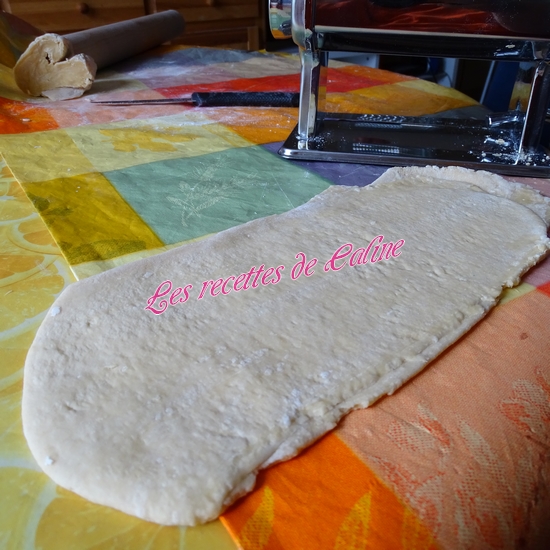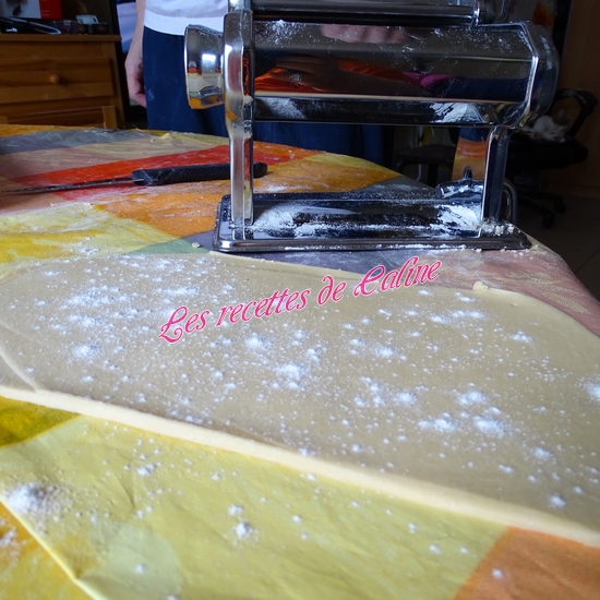 Mettre votre laminoir sur 2, puis passer une 1ere fois le 1er pâton, une fois passé, pliez en 2 et repassé la pâte.