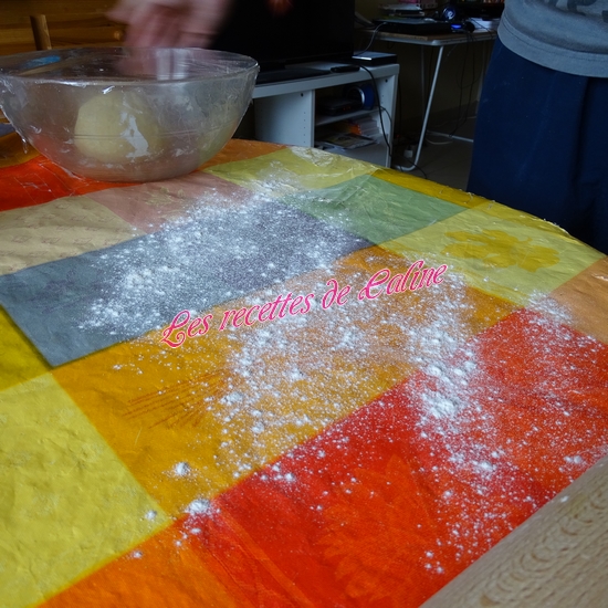 Farinez votre plan de travail et y déposer la pâte afin de la pétrir pendant un instant.