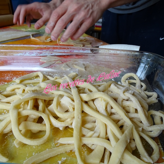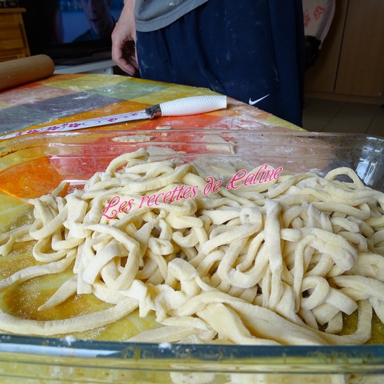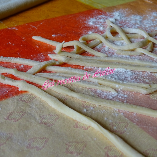 Farinez légèrement les bandes pour les séparer. Voilà vos nouilles sont prêtes .