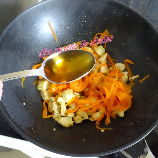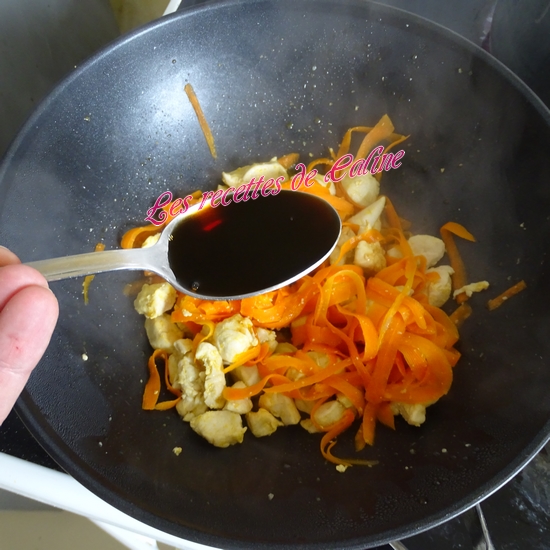 Si vous utilisez des nouilles industriel, cuire les nouilles comme indiqué sur le paquet, pour les nouilles fraîches, les plonger dans l’eau bouillante et dès qu’elles remontent à la surface c’est qu’elles sont cuites, perso, je les laisse un peu plus longtemps. Égouttez-les et versez-les dans le wok, bien mélangez le tout.