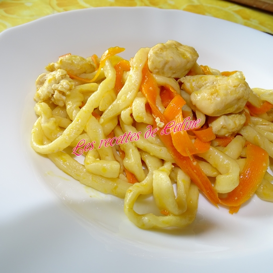 Dégustez aussitôt vos nouilles sautées au poulet.